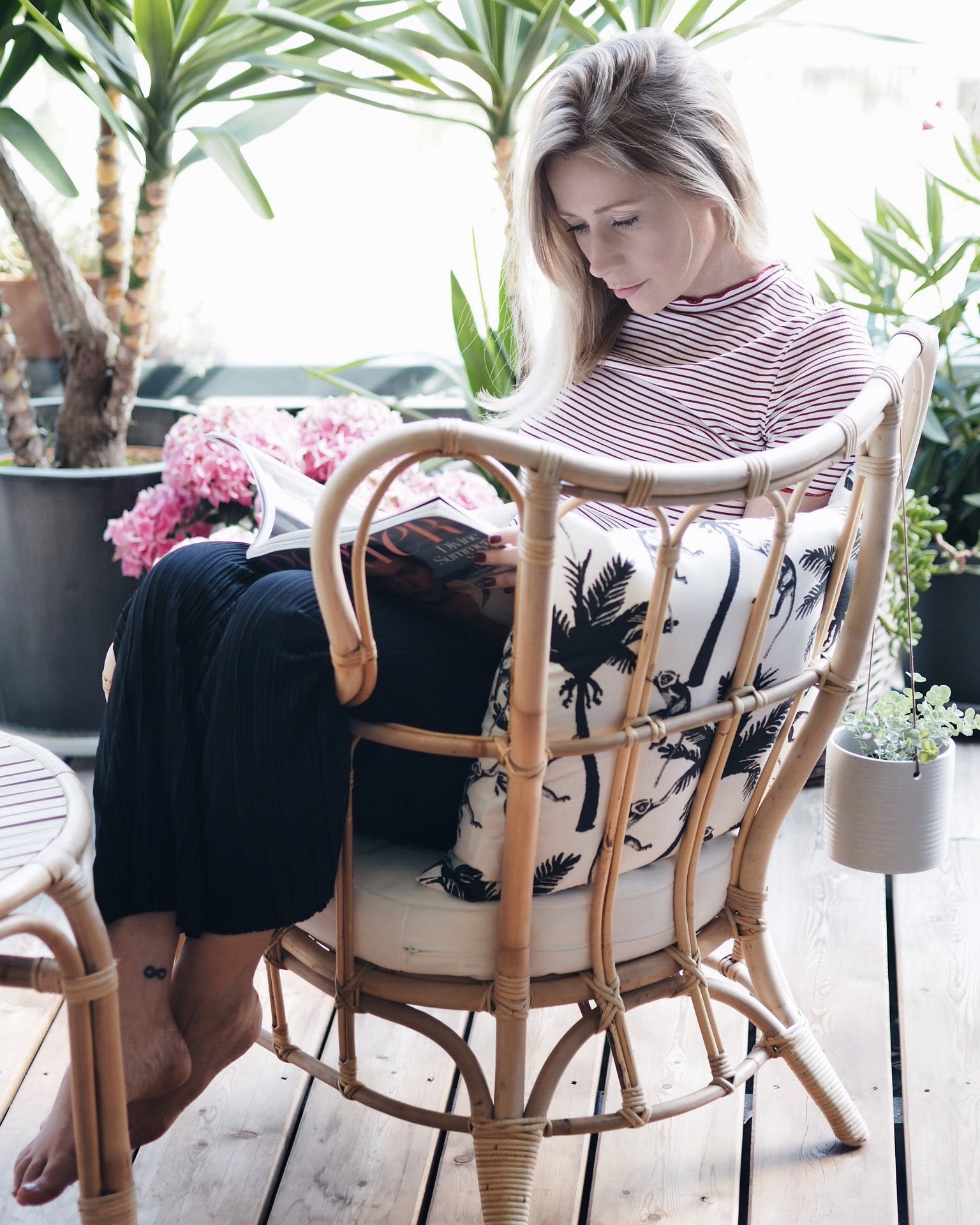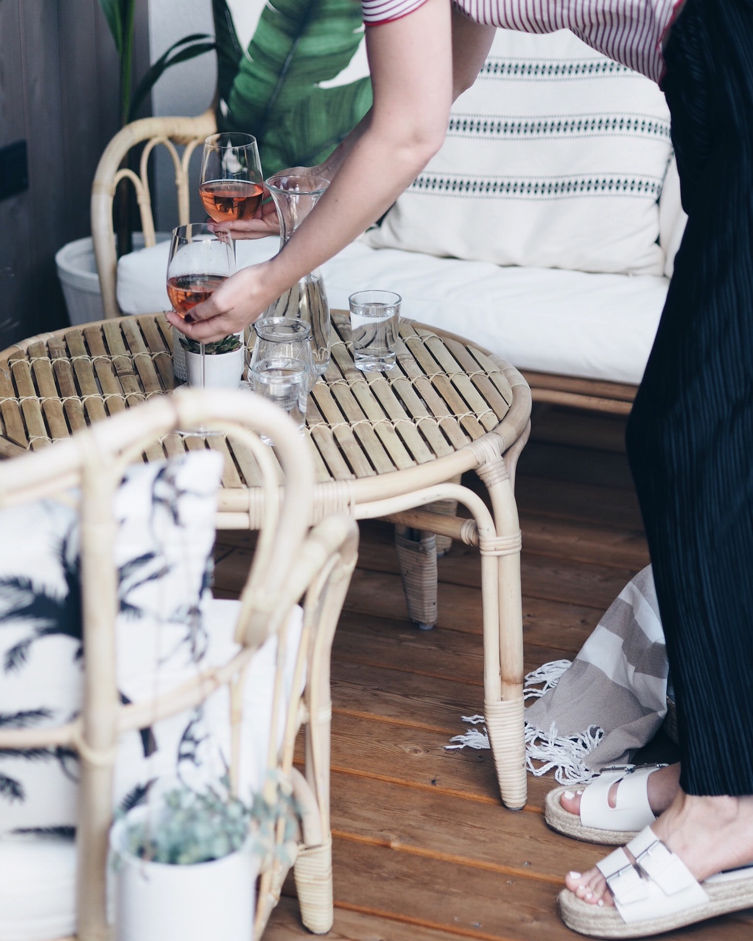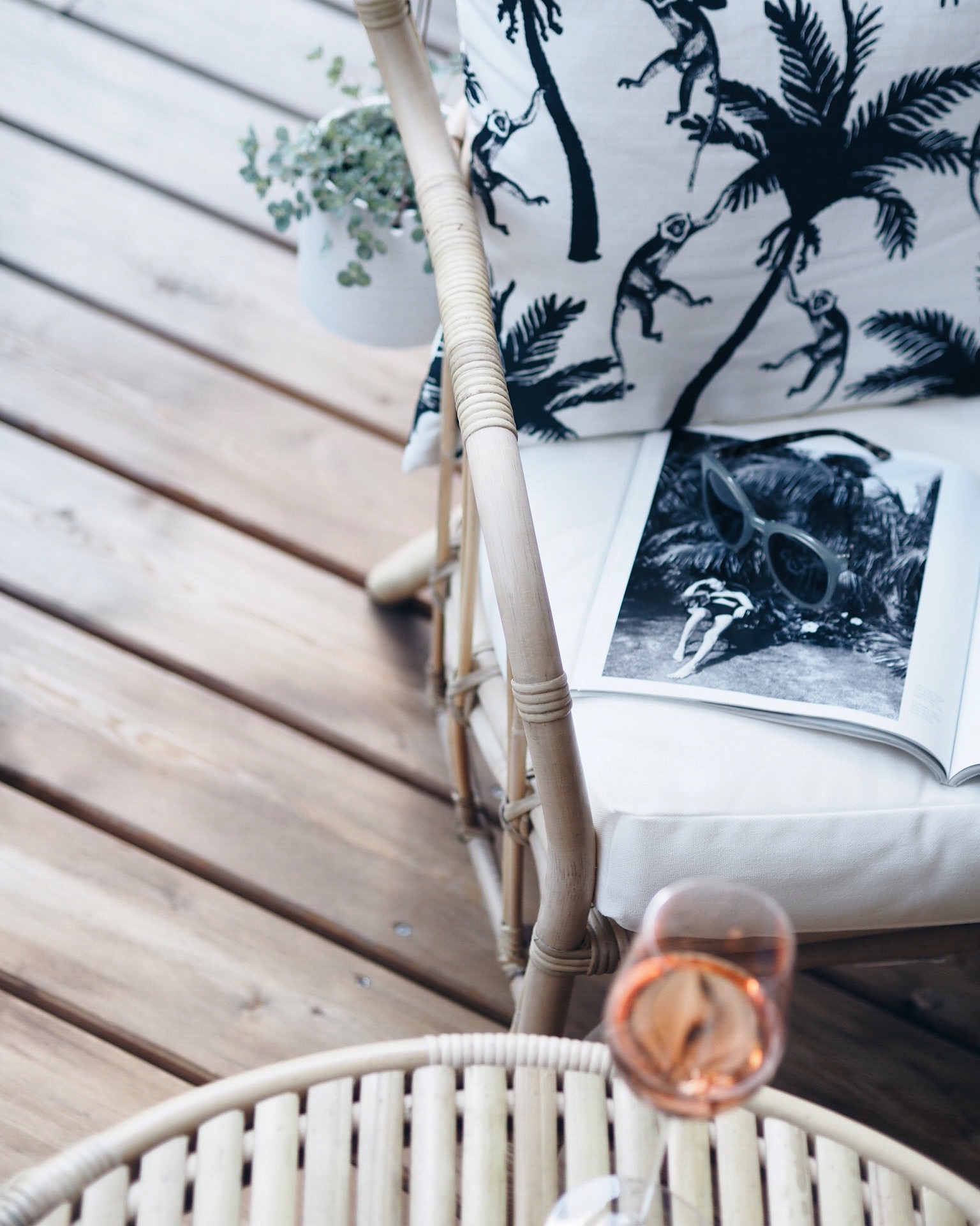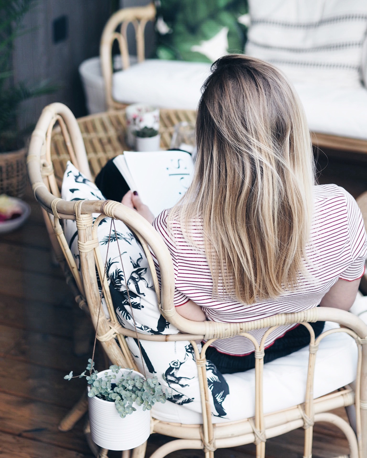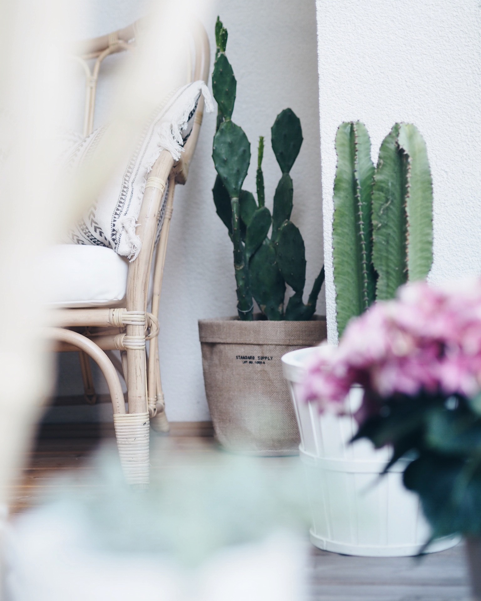 I have to confess: Lately I have been addicted to a series called Bloodline streaming on Netflix. It’s set in the Florida Keys and the scenery seriously blows my mind every time I get to watch it. Long story short: I do not have this beautiful, astonishing, breathtaking sea in front of my veranda every day (sobs), so the only reasonable compromise that came to my mind was heading out to bring the Keys to my home and upgrade our outdoor living room aka our spacious balcony. I have been eyeing with a rattan outdoor seating ever since reading this article and guess what: Whilst ‘rattan’ might not spark the idea of a modern interior, it’s making its way back to home décor and I see it basically everywhere these days including latter series. Since we’re spending a lot of time outside in summer, catching up after long work days, having our meals or just enjoying a glass of rosé, we fulfilled our dream and upgraded our outdoor living space. I also amped up the plant game and invested in a bunch of beautiful palm trees, cacti… I’m quite happy about how the combo turned out: Stylish but comfortable with a lot of love for the details. Because that’s what it’s all about, right?