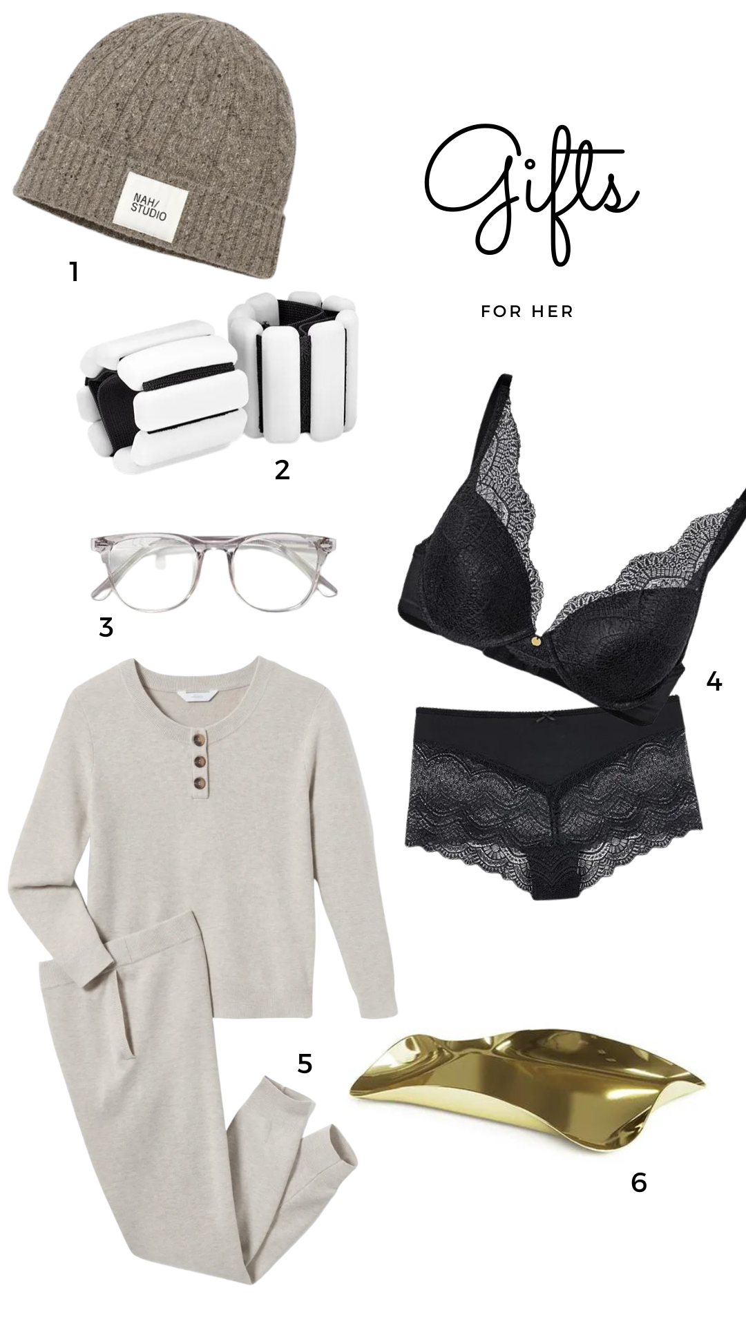 1 Haube / 2 Bala Weights / 3 Blaulichtfilter-Brille / 4 Unterwäsche