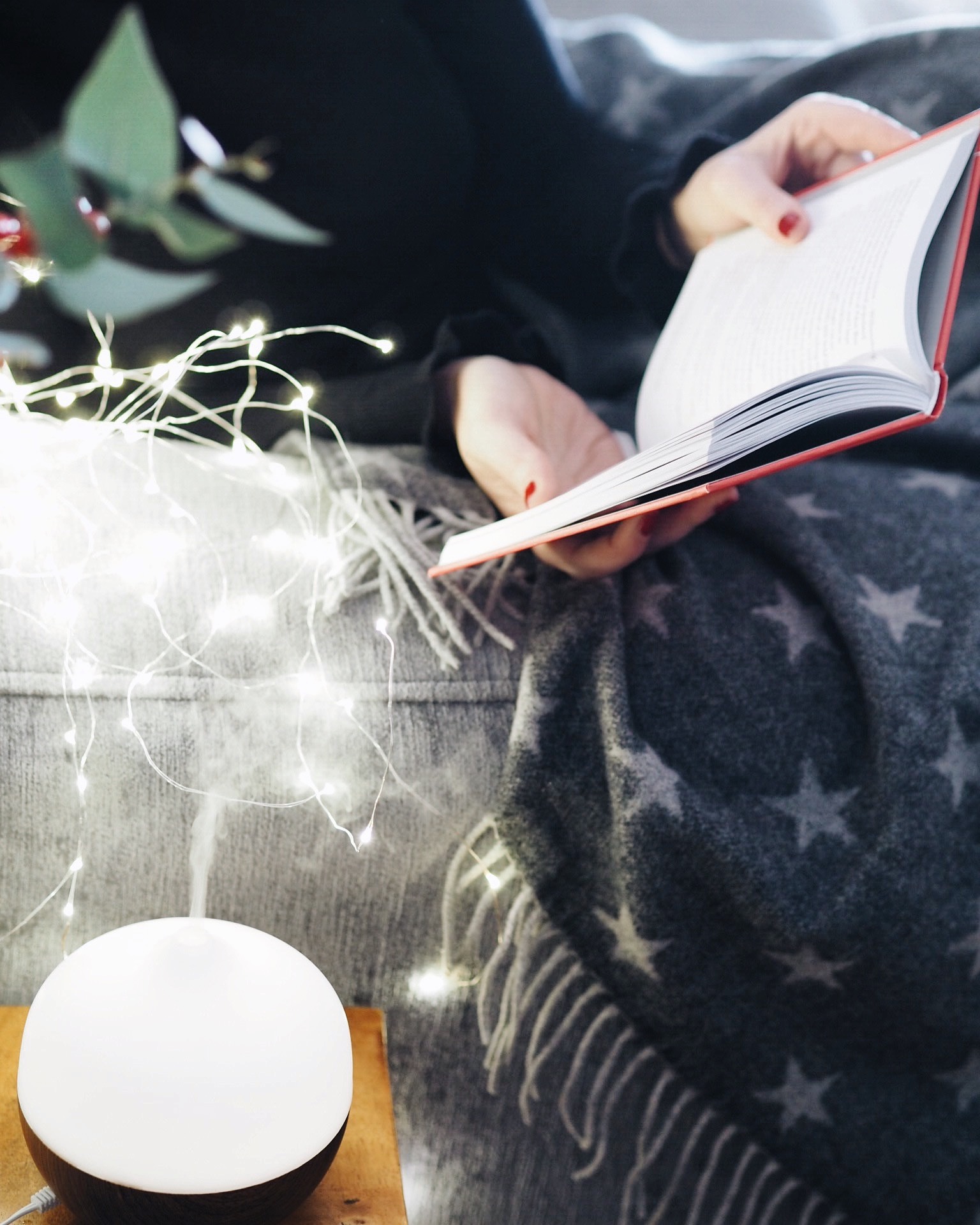 Bei allen weihnachtlichen Besorgungen und Terminen verliert man zu leicht die eigenen Bedürfnisse aus den Augen. Also raus mit dem Buch (wie wäre anlassbezogen mit „The Life Changing Magic of Not Giving a F**k“ von Sarah Knight), ab unter die Kuscheldecke und Entspannmodus an. Gelingt in meinem Fall übrigens wunderbar mit Aromaduftlampe und Fairy Lights.