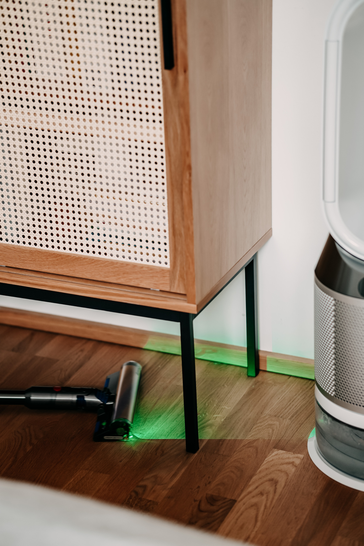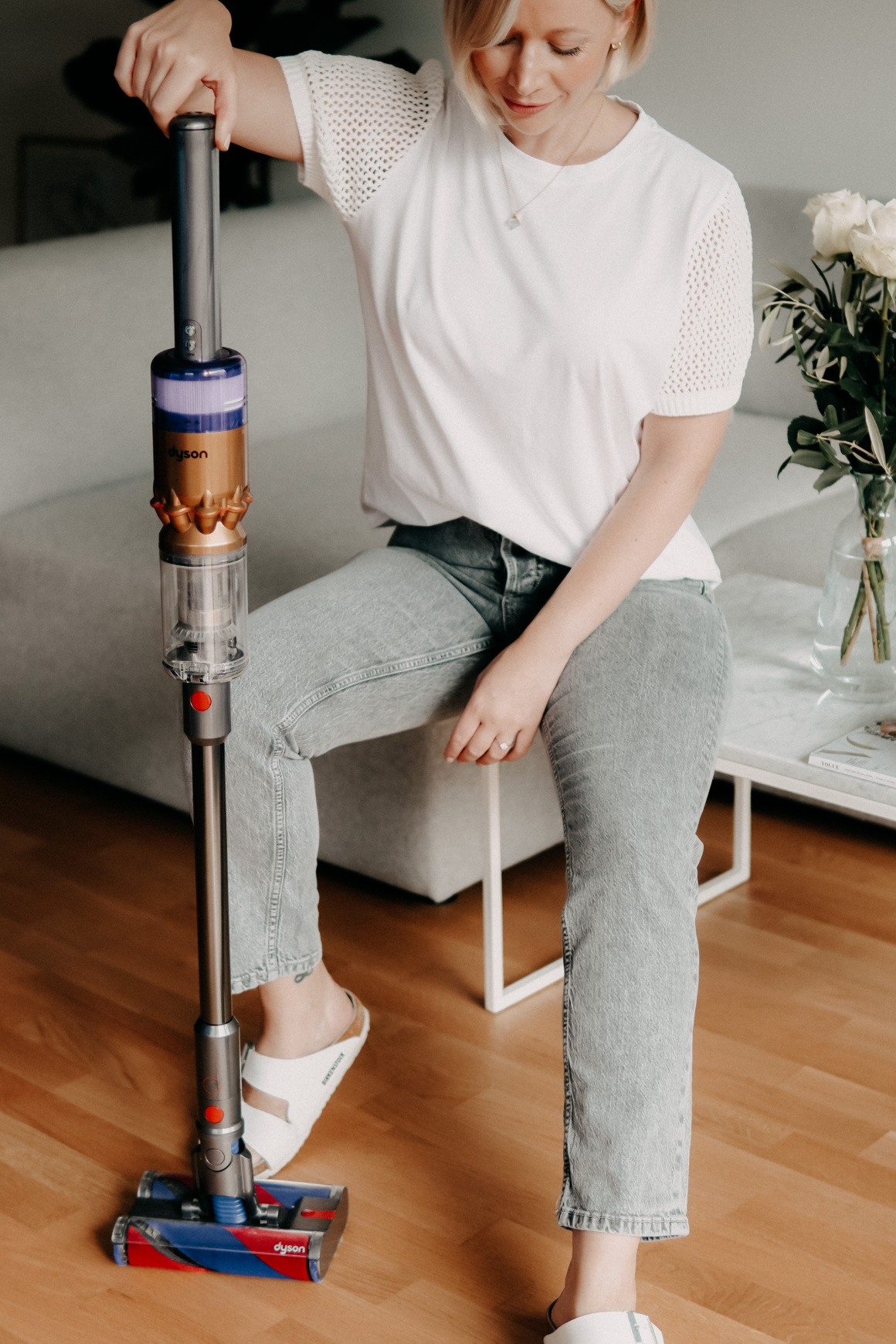 Für alle leichtfüßigen Haushalts-Tänzerinnen unter euch: Mit dem Omni-Glide werdet ihr richtig happy. Er lässt sich nicht nur leicht in jeder noch so kleinen City- Wohnung verstauen, er gibt auch beim Saugen richtig Gas: Ausgestattet mit einer schwenkbaren Fluffy-Bürste, die sich in alle Richtungen dreht (vorwärts, rückwärts und auch seitwärts!), nimmt er sowohl grobe Verschmutzungen als auch feine Staubpartikel auf und macht auch die Ecken sauber. Er ist besonders gut geeignet für Hartböden und genial zum Schnell-in-die-Hand-Nehmen und los geht’s. Sein Abscheidesystem, der Motor, der Filter und Handgriff sind in einer Linie ausgerichtet, das Gerät kann also auch ganz flach am Boden aufliegen. Perfekt also unter jedem Sofa, der Kommode, hinter dem Bücherregal. Außerdem hat er als erster Dyson eine Einschalttaste und dazu eine Boost-Funktion, die noch mal extra Gas gibt. Dank umfangreichem Zubehör (er wird mit 4 Aufsätzen geliefert, darunter die extrem praktische LED Fugendüse und einem Ladegerät sowie einer Wandhalterung) ist er das perfekte Gerät für kleine Wohnungen oder in meinem Fall: Als Zweitgerät für die schnelle Saugerei zwischendurch.