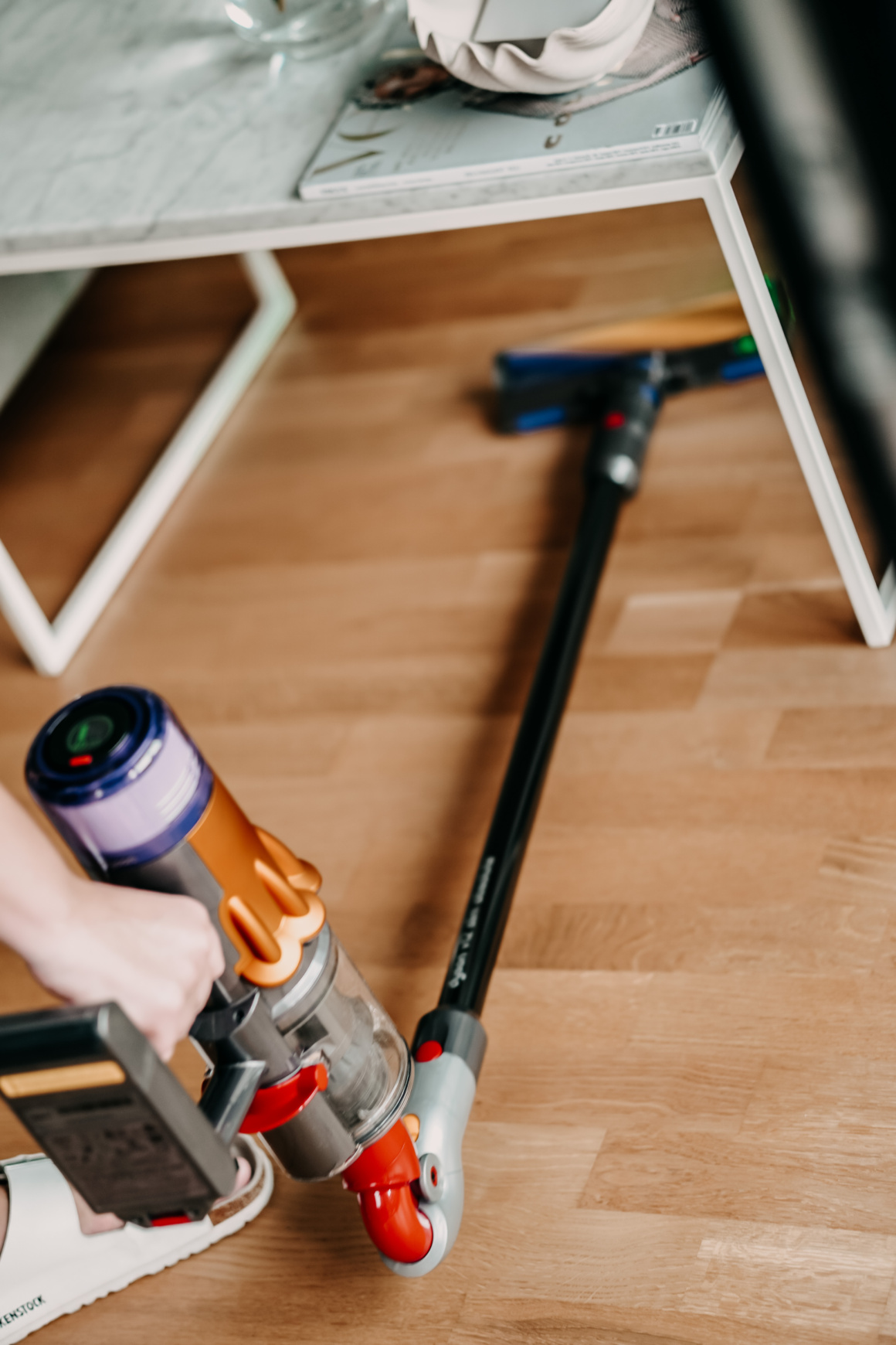 Ihr könnt euch jetzt schwer zwischen Omni-glide und V15 entscheiden und sucht einen richtig guten Mittelweg? Wie wäre es mit dem V12? Er verfügt ebenso über die modernste Dyson Technologie mit Laser-Stauberkennung und effizienter Filtration, ist mit 2,2kg allerdings um 0,8kg leichter als der V15. Er lässt sich easy bedienen, weil er über eine Ein- und Ausschalttaste verfügt, die nicht gedrückt bleiben muss und gewinnt so ganz viel an Lässigkeit. Im Vergleich zu anderen Staubsaugern seiner Klasse ist er immer noch super saugstark und hat wie der V15 eine Akku-Laufzeit von bis zu 60 Minuten! Er hat’s in sich: Solide, bodenständig, aber genug Power für den Alltagsstaub.