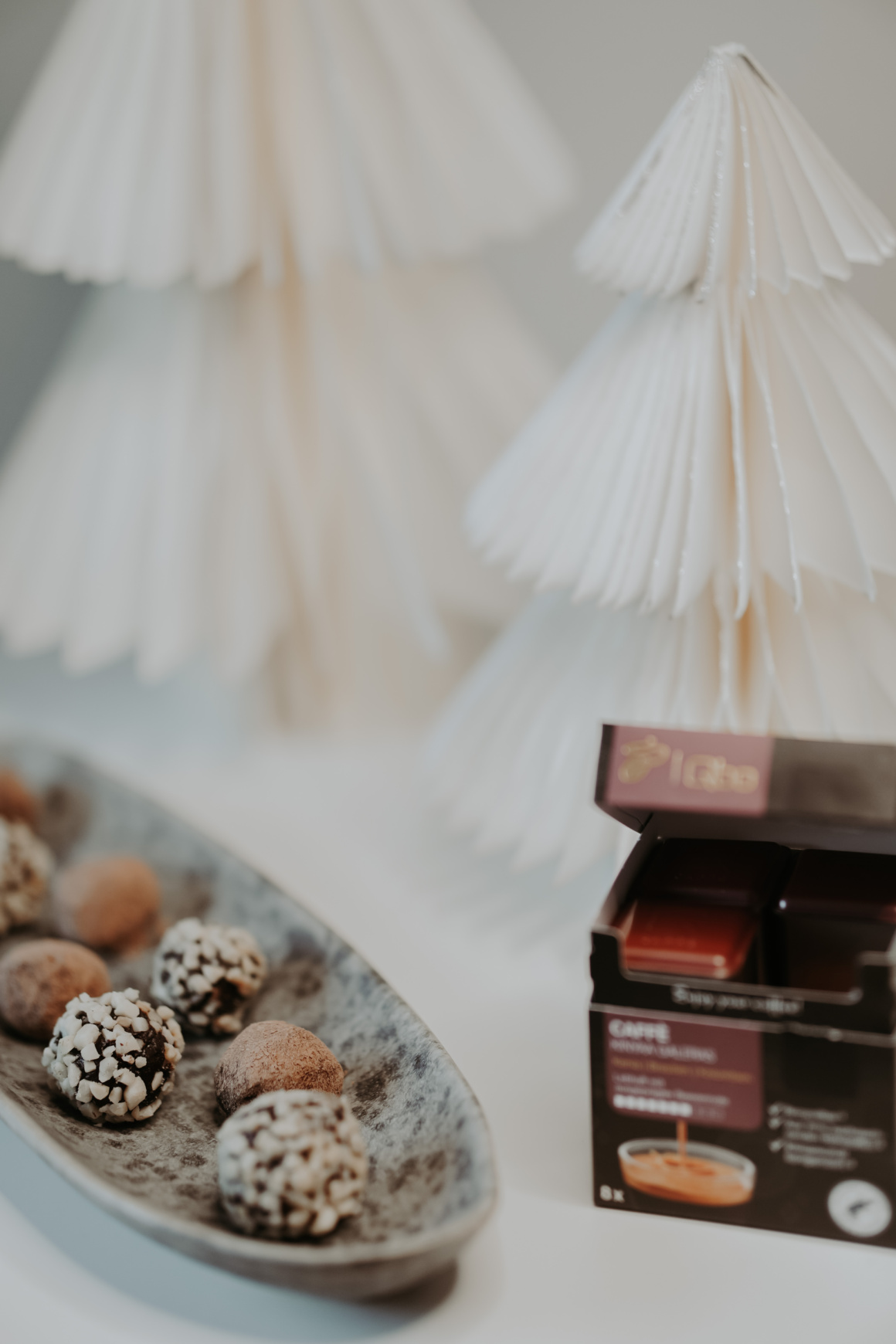 Die Weihnachtszeit ist perfekt, um den Liebsten eine Freude zu machen und gemeinsam Quality Time zu verbringen und natürlich, um zu naschen. Relativ gesund bitte, denn die Vorsätze für Jänner stehen schon! Damit es nicht so schwerfällt, sie umzusetzen, setze ich bei den süßen Leckereien immer gerne auf Alternativen mit weniger Zucker oder Zuckeralternativen. Eines darf als Zutat definitiv nie fehlen: Der Lieblingskaffee. Verarbeitet habe ich den Qbo Caffè Kinyaa Galeras, der beschrieben wird als “ein facettenreicher Genuss aus 100% Arabica Bohnen mit zarten Anklängen von Beeren”. Ich finde, er schmeckt einfach und passt perfekt zum dunklen Kakao. In diesen Healthy Coffee Truffles findet ihr ansonsten ein paar Zutaten, die ihr wahrscheinlich sogar bereits in ihrem Küchenschrank habt. Die Truffles sind in einer guten halben Stunde fertig. Fuzz free und leicht zu machen – mögen wir. Meine neue Qbo mag ich übrigens auch sehr. Die Essential passt einfach perfekt in unser Zuhause.