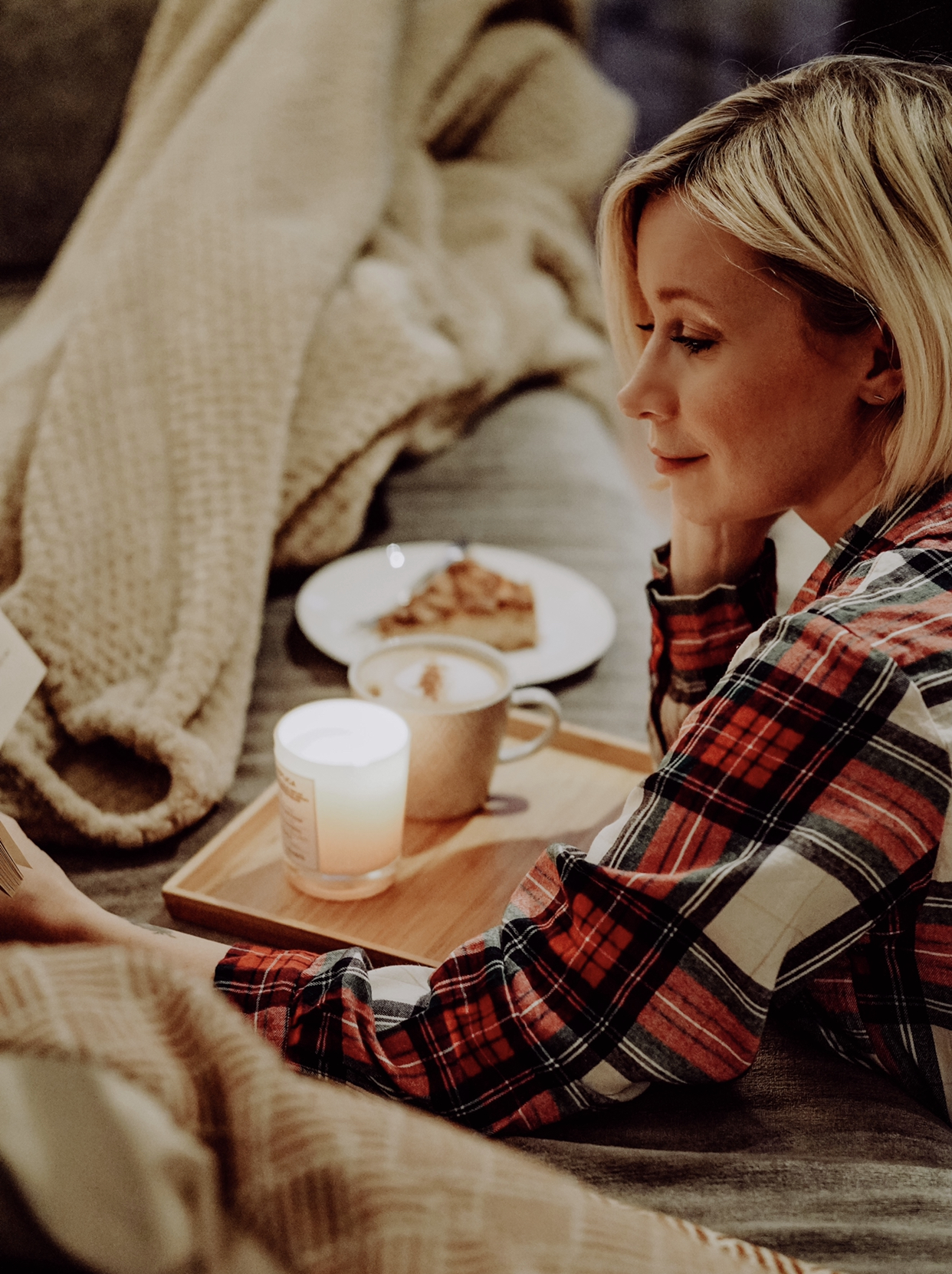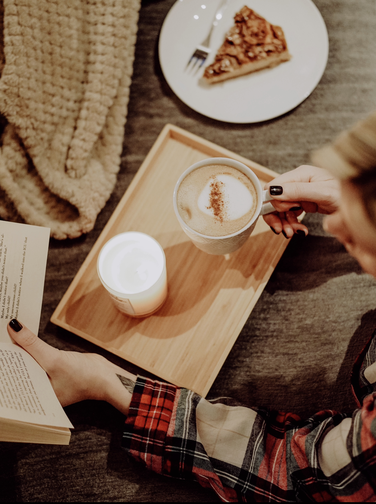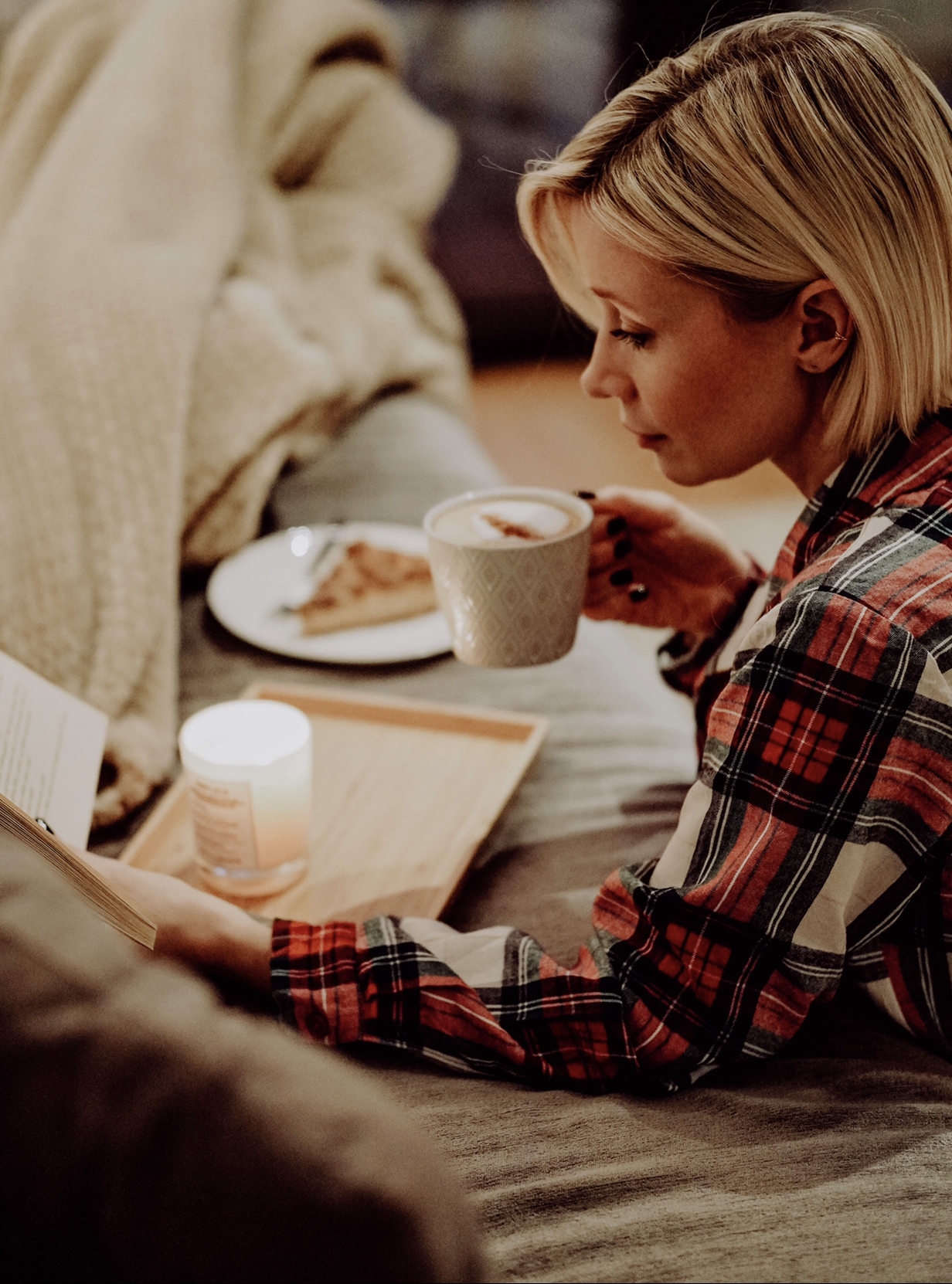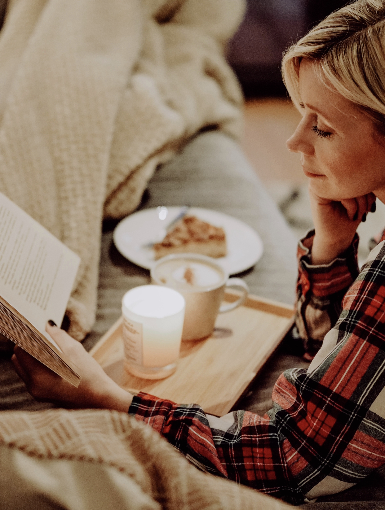 Was noch hilft sind abendliche Kuchenstücke. Konsumiert auf der Couch, mit beiden Beinen hoch, mit Kaffee, diesmal die koffeinfreie Variante. QBO hat einen Decaf im Sortiment, der beim Geschmack keine Kompromisse macht, halt ohne Koffein. Ideal für meine Kuchenbegleitung. Statt Netflix wird gelesen, statt der Fernbedienung wandert ein Buch in meine Hand. An nichts anderes denken als an die Geschichte, die man liest. Der Weihnachtstrubel kann warten. Der kommt ohnehin von alleine. Und ja: Kuchen geht zwar immer, aber im Winter, zu Weihnachten kommt dann doch am meisten Stimmung auf.