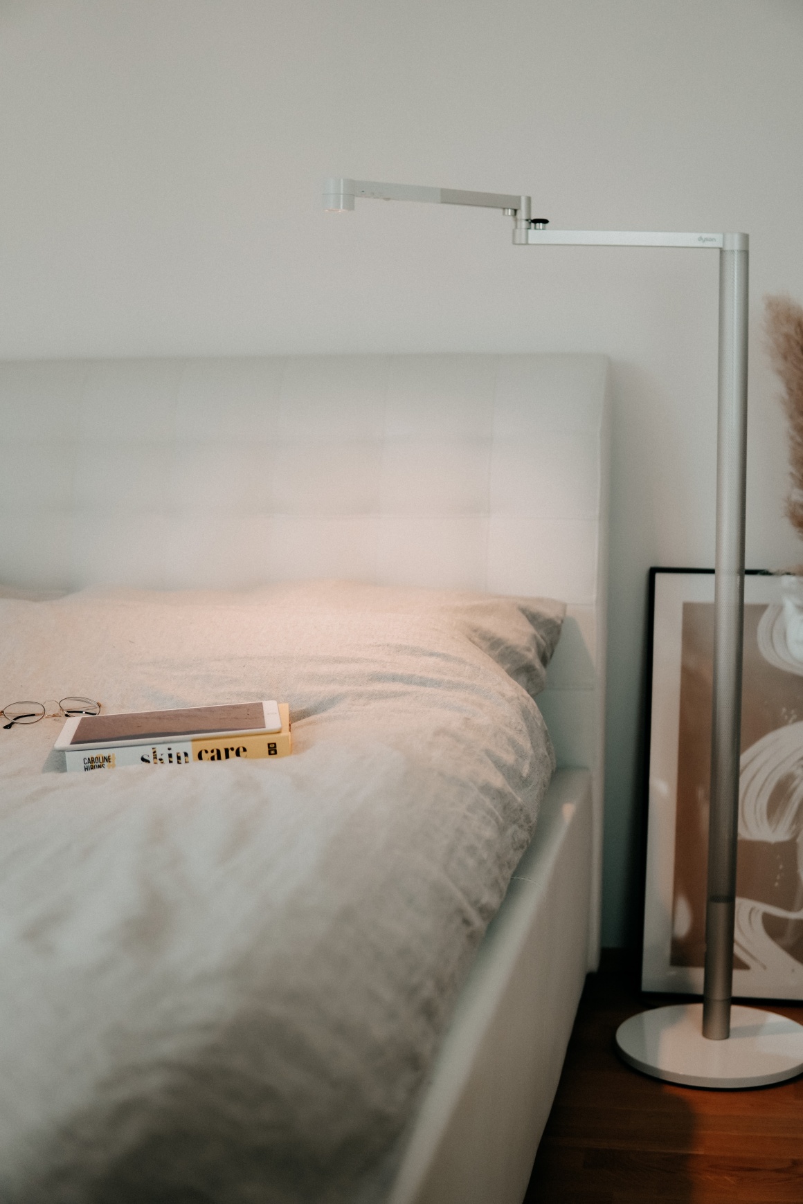 Jeder kennt es: Man arbeitet konzentriert oder liest, es wird später und später und plötzlich sitzt man quasi im Dunklen – zum ersten Mal meldet sich die Müdigkeit, man wird unkonzentrierter. Da hilft mir ein wirklich bewusstes Achtgeben auf die Beleuchtung, auf die richtige Lichtquelle. Die Dyson Lightcycle Morph ist ein intelligentes Beleuchtungssystem für Innenräume, das sich an das Licht der Umgebung anpasst. Man steuert über eine App, welche Aktivität man gerade ausführt – die Lampe weiß dank Standortbestimmung alle Parameter zum lokalen Tageslicht und adaptiert die Lichtintensität und -temperatur, um die Augen optimal zu entlasten. Gerade im Winter, wo es sowieso an natürlichem Tageslicht mangelt, ist sie bei mir stark im Einsatz. Als flexible Standleuchte nehme ich sie mir in der Wohnung dorthin mit, wo ich sie gerade brauche, beim Lesen im Bett oder zum Schreibtisch. Besonders gemütlich wird es übrigens abends, die integrierte Lichtsäule schafft eine angenehme, entspannte Atmosphäre. Falls euch das innovative Lichtsystem interessiert, ich habe es in einem Blogpost für euch genau unter die Lupe genommen.