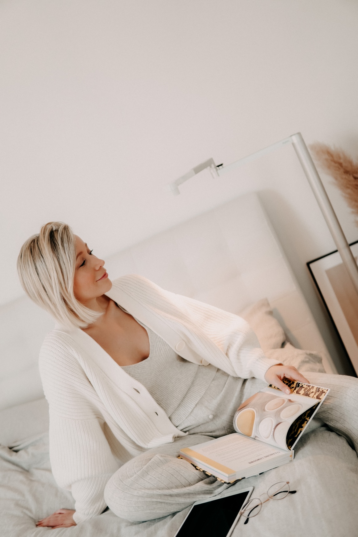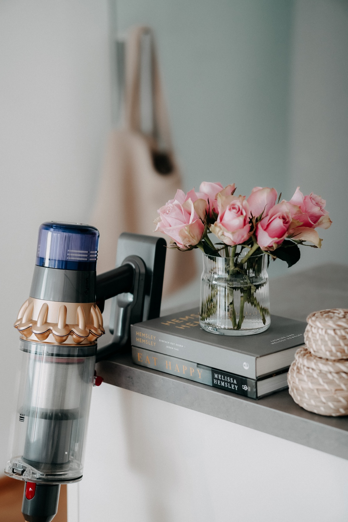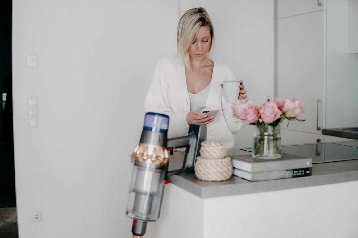 Meine Routine sieht also täglich in etwa so aus: Nach meiner morgendlichen kalten Dusche gehe ich ins Wohnzimmer, wo der Dyson Pure Humidify+Cool auf mindestens 40 Prozent Luftfeuchtigkeit gestellt wird, bei einem Kaffee gönne ich mir kleine Updates zur Lage der Social-Media-Nation und danach wird eine Runde gesaugt, bevor es für mich an mein jeweiliges To-do geht. Entspannen kann ich mich zurzeit am besten beim Lesen und wenn frische Blumen und ein paar healthy Snacks zu Hause sind.