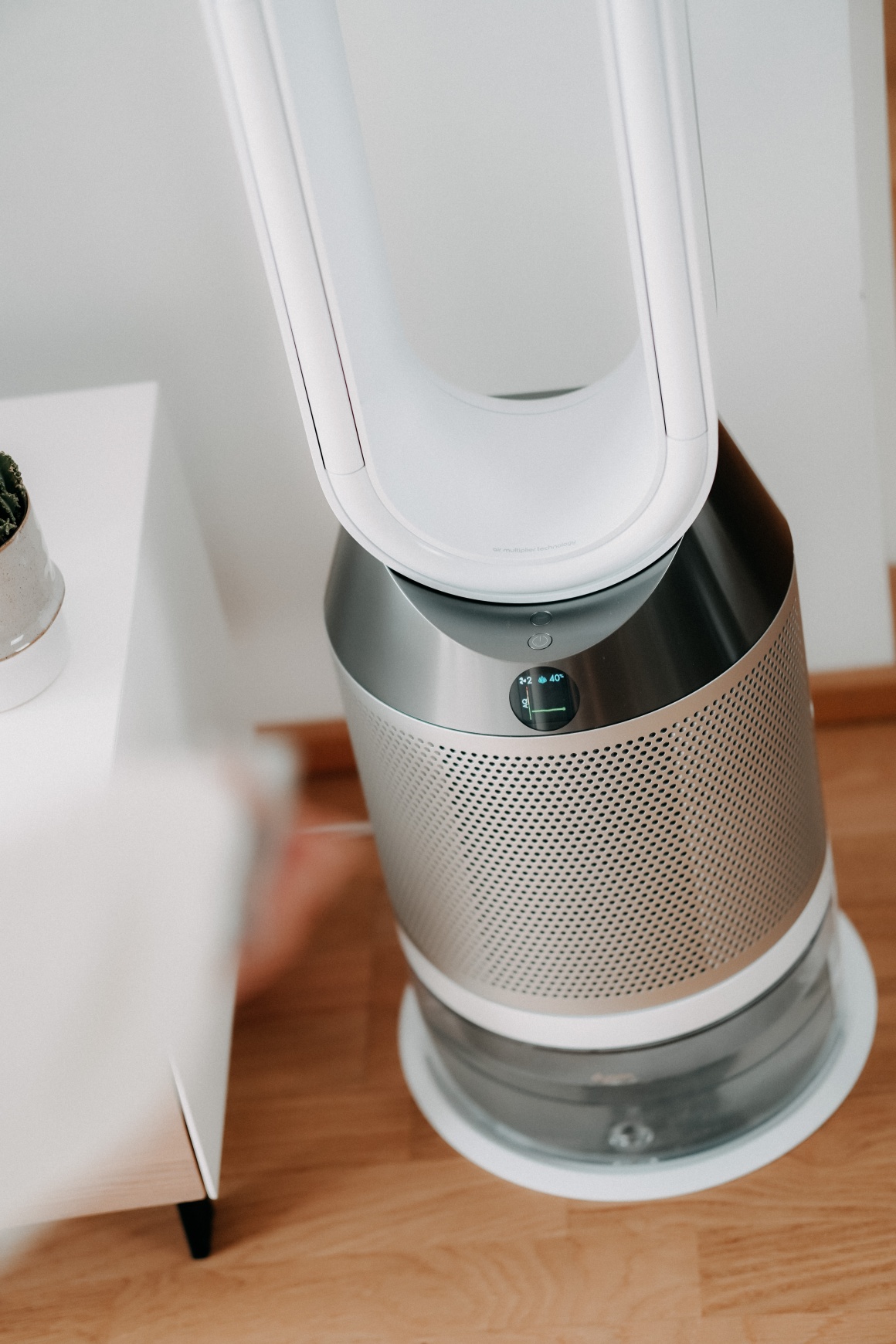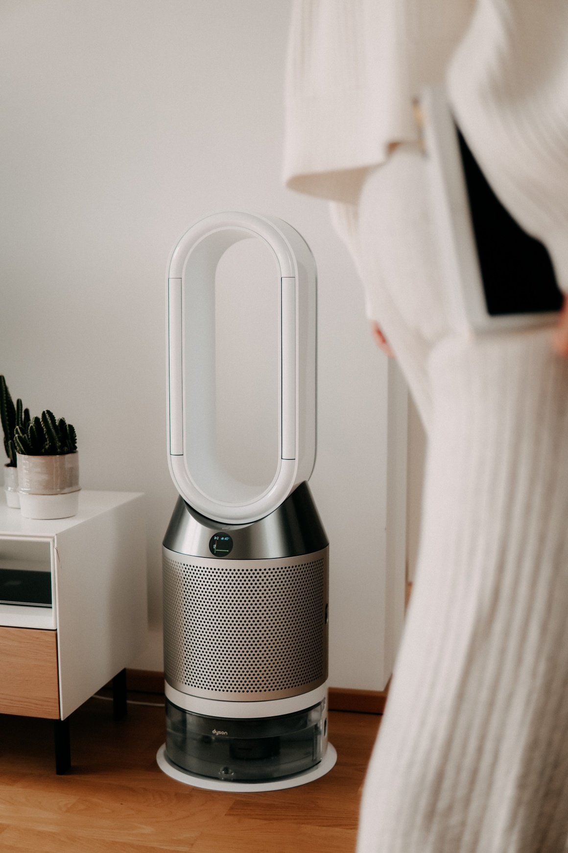 Nein, es folgt keine Predigt über den idealen Wasserkonsum. Mir geht es um die Luftfeuchtigkeit im Innenraum. Wenn ich am Schreibtisch sitze, lange auf den Bildschirm schaue, merke ich oft, wie die Haut rund um meine Augen und an meinen Schienbeinen zu spannen beginnt. Früher wurde das gekonnt wegignoriert, weil vorrangig soll natürlich mal das Projekt, die Aufgabe erledigt werden. Je mehr ich zu Hause bin, desto mehr habe ich aber gelernt, bewusst zu reagieren und vorzusorgen, mein Wohlbefinden mehr in den Mittelpunkt zu rücken. Ein krasses Umdenken hat sich beim Lesen einer Studie zur Wirkung von einem schlechten Raumklima auf den Hautzustand bei mir eingestellt. Im Grunde fördert eine niedrige Luftfeuchtigkeit im Innenraum Fältchen und lässt die Haut in ähnlichem Maß früher altern wie UV- Strahlung. Die optimale Luftfeuchtigkeit von 40-60 Prozent gibt der Haut auch im Winter den nötigen Glow zurück. Der Dyson Pure Humidify & Cool ist nicht nur das beste Asset für saubere Luft, sondern kann dank Dyson App gesteuert auch schnell warnen, wenn das Raumklima suboptimal wird, Schadstoffe (KERZEN!) in zu hohem Maß in der Luft vorhanden sind und die Luft zum Besseren regulieren.