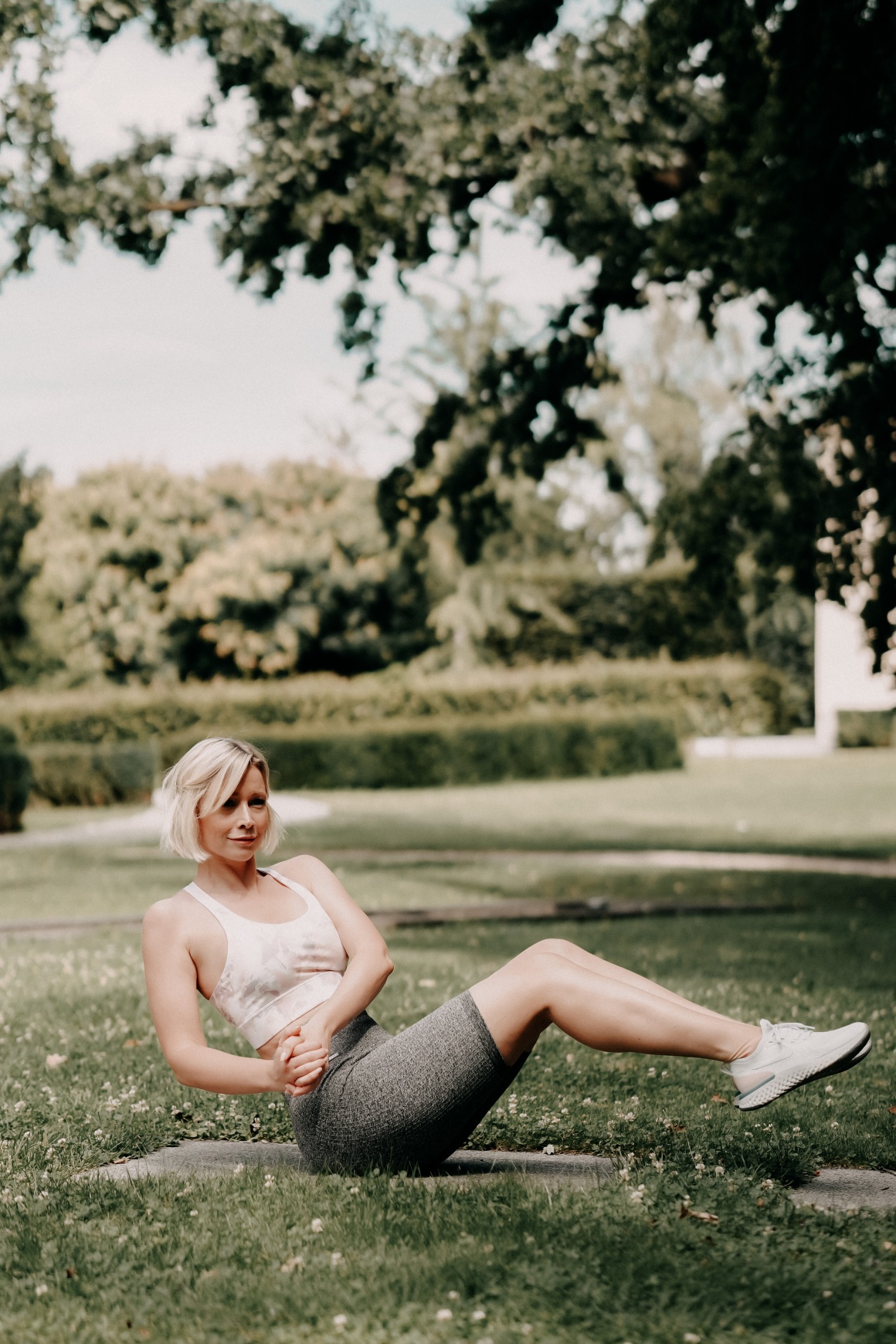 Während ich das Fitnessstudio und die Indoor-Workouts liebe, habe ich trotzdem besonders im Sommer oft das Bedürfnis, draußen etwas zu tun und finde es großartig, dass man in weniger als einer halben Stunde etwas für sich, seinen Körper und seinen Geist tun kann. Im Endeffekt kommt es nämlich nur darauf an, sich bewusst für die Bewegung zu entscheiden, sich Zeit zu nehmen – selbst, wenn der Tag nur eine Runde des Zirkels zulässt: Ihr habt euch aufgerafft, etwas getan und das ist die beste Art von Selfcare im Alltag. Ihr könnt die Übungen im Folgenden einmal durchmachen und dann eine zweite oder dritte Runde anhängen. Damit trainiert ihr den ganzen Körper in einer Intensität, die ihr selbst bestimmt. Wichtig ist, dass ihr immer an eine starke Mitte denkt und euren Atem bewusst einsetzt, um euch durch die Übungen zu leiten.