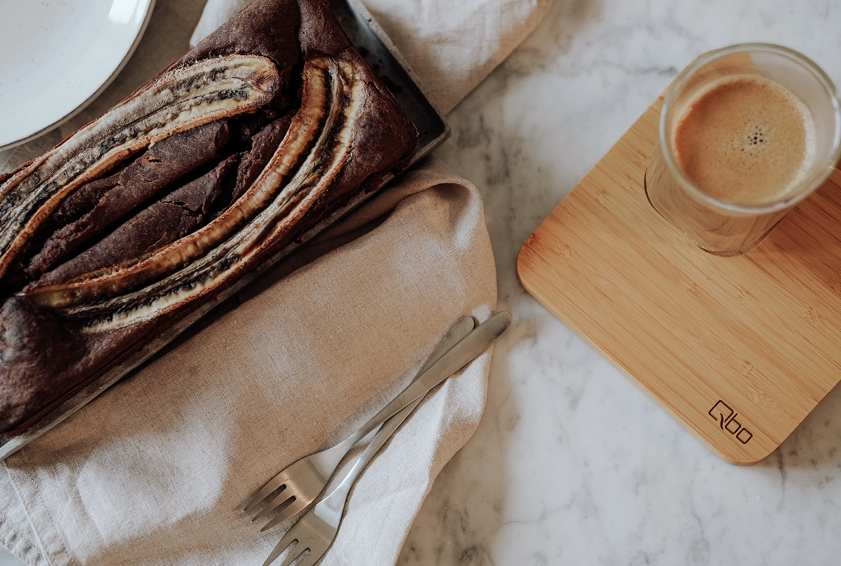Minimalismus. Ein Wort, das uns in diesen Tagen mehr denn je begleitet, denn wenn ihr das lest, seid ihr nicht irgendwo unterwegs und vielleicht mobil am Handy wie sonst, sondern mit großer Wahrscheinlichkeit daheim und habt vielleicht ein bisschen Zeit über, um euch was Gutes zu tun. Gemeinsam mit Qbo Coffee habe ich mir ein schönes, einfaches Rezept überlegt, das als Frühstück, Snack oder Nachspeise durchgeht – ihr wisst es schon vom Titel: Ein Bananenbrot. Aber nicht irgendeines, sondern eines mit Kaffee. Uns was mit besonders wichtig ist: Das Rezept muss schnell gehen, ohne exotische Zutaten auskommen und die Küche so wenig wie möglich im Chaos untergehen lassen. Ein paar überreife Bananen? Check. Mehl? Check. Kaffee? Hat sowieso einen Fixplatz. Also ran an die Schüsseln.