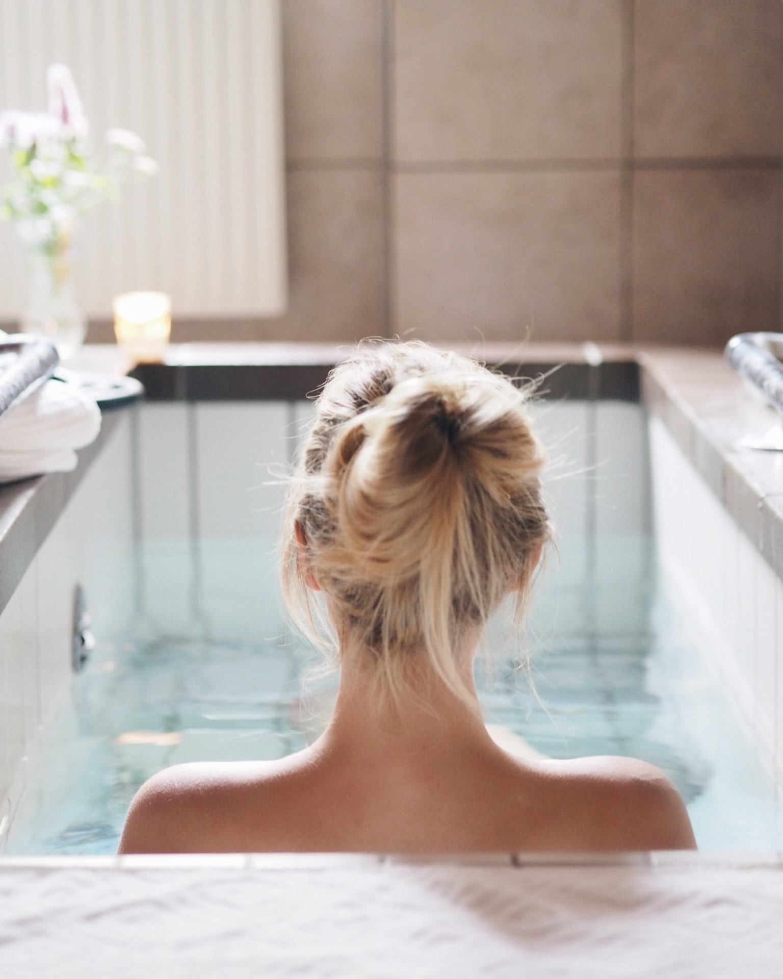 Es kommt mir sehr gelegen, dass es am Sonntag nun tatsächlich regnet und ich gönne mir ein Heilbad mit Retro-Chic. Für rund 20 Minuten habe ich ein im Boden eingelassenes Wannenbad ganz für mich allein. Die liebe Julia an der Rezeption erklärt, dass bei einer Badetemperatur von 36-39°C der Stoffwechsel angeregt wird und durch das mit Radon angereicherte Thermalwasser für kurze Zeit milde Alphastrahlung freigesetzt wird, was wiederum die Selbstheilungskräfte aktiviert. In Kombination mit der herrlichen Bergluft passiert etwas Hervorragendes: Ich verspüre eine tiefe Glückseligkeit. Nachteil: Ich will hier nie wieder weg! Wer sich außerdem verwöhnen lassen möchte, findet hier im Spa zwei Saunas und eine Vielzahl an Treatments mit AVEDA-Produkten.