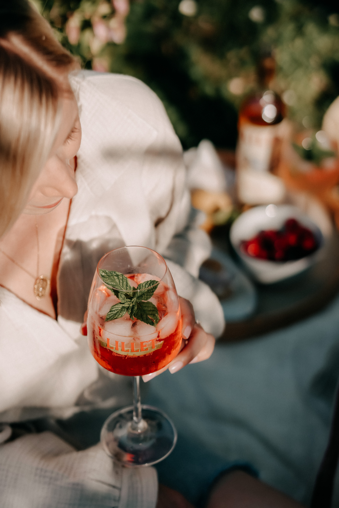 Im Grunde braucht es für ein Picknick nicht viel: Eine schöne Decke, eure liebsten Snacks und Getränke sowie ein wenig Geschirr von zu Hause. Wir wollten es besonders gemütlich haben und haben uns auch ein paar Kissen eingepackt, um den Tag im Freien richtig lange auszukosten. Sonnencreme und eventuell auch ein Insektenschutz können dabei helfen, dass euch der Tag entspannt in Erinnerung bleibt. Damit das Picknick idyllisch und unverwechselbar wird, kommt es für mich definitiv auf die Details an. Dafür habe ich mir überlegt, uns feine Drinks von Lillet zu mixen! Es ist einfach ein Highlight, zu zweit oder mit euren Liebsten einfach mal nur in der Wiese zu sitzen, zu essen, anzustoßen… Sich zu erden und die Natur zu genießen. Ich schwärme heute noch von diesem schönen Tag und eines ist sicher: Wiederholung demnächst geplant!