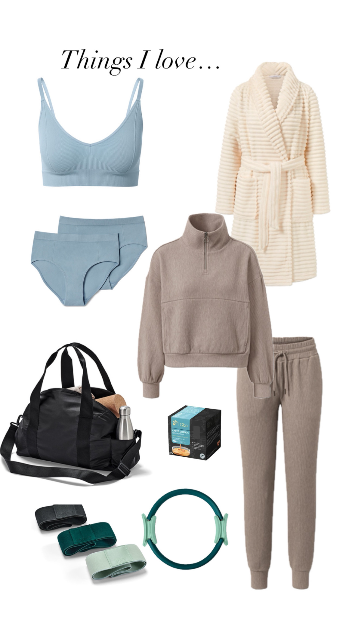 Trainingsbänder // Pilatesring // Sweatpullover // Sweathose // Sporttasche