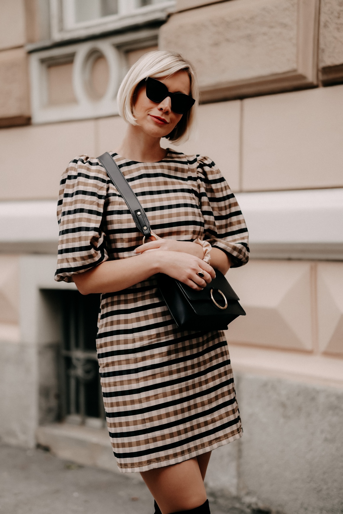 Während ich schon wieder zu 100% in der neuen Woche angekommen bin, gibt es von mir noch ein Outfit vom letzten Wochenende, denn wenn Frau etwas tragen sollte im Herbst/Winter 2020, dann ist das aus meiner Sicht, definitiv irgendwas mit pompösen Ärmeln. Nichts, wirklich gar nichts, geht in dieser Saison ohne Statement Sleeves. Und da es, wie wir gerne sagen, herbstelt, bin ich natürlich nicht an diesem karierten Kleid mit dem voluminösen Plus vorbei gekommen. Die Farben – ohhhhh, der Schnitt – ahhhhh, insgesamt ein hübsches Key Piece für den Kleiderschrank im Herbst. Ich stelle mir dazu groben, hellen Strick vor, derbe Boots oder auch feminine Overknees und einen hübschen Blazer: Eine Kombi, wie wie ich sie eben an diesem Wochenende getragen habe.