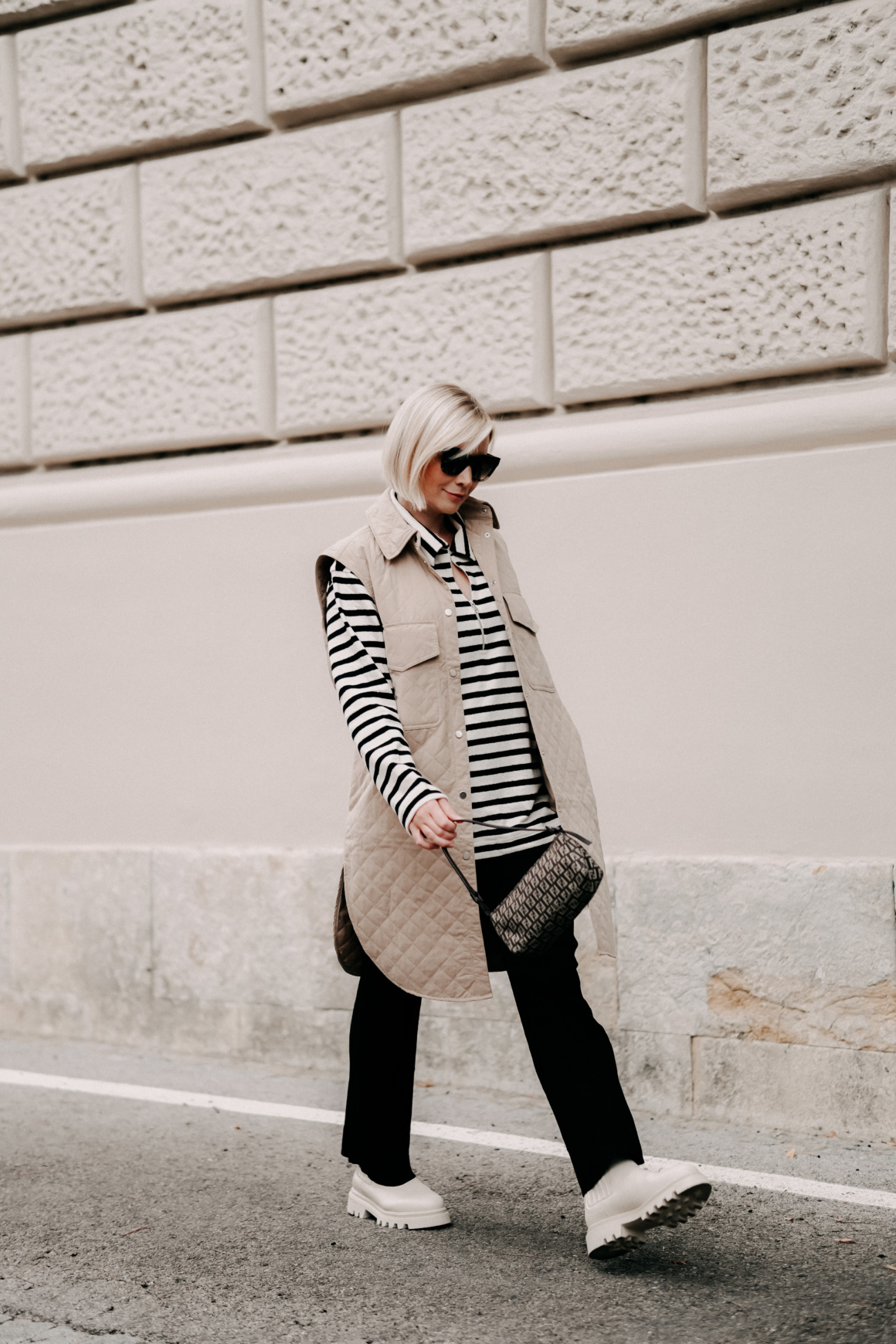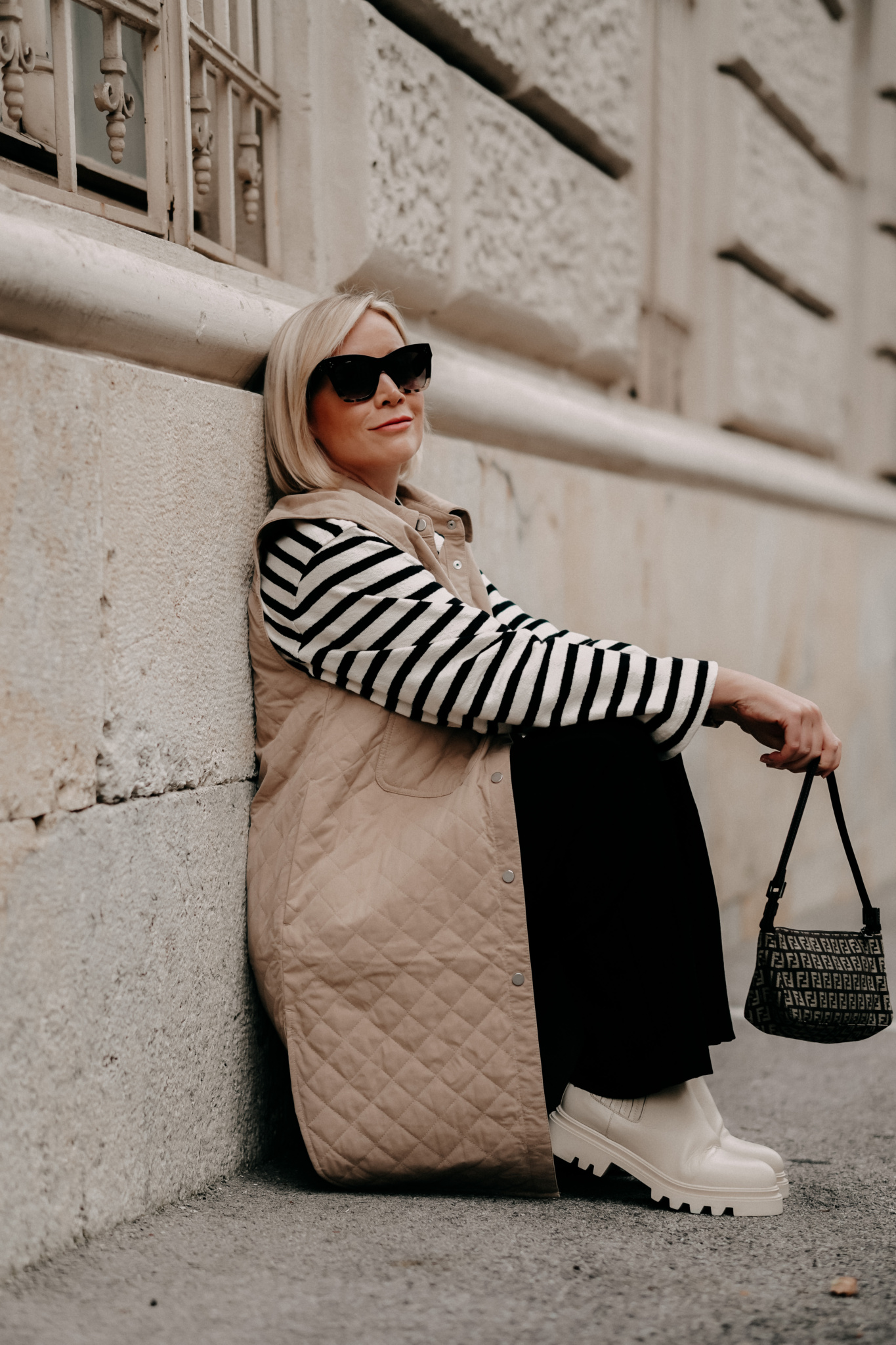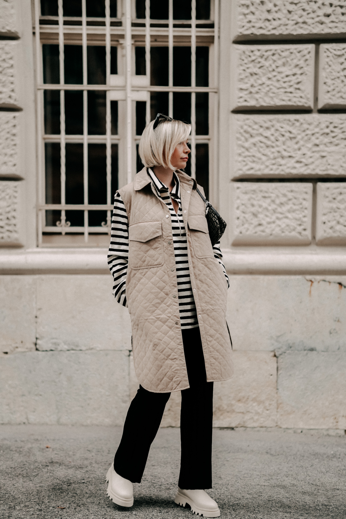Weste: H&M / Jersey Polo: Arket / Boots: CCC / Tasche: Fendi (vintage) / Hose: H&M / Sonnenbrille: Céline