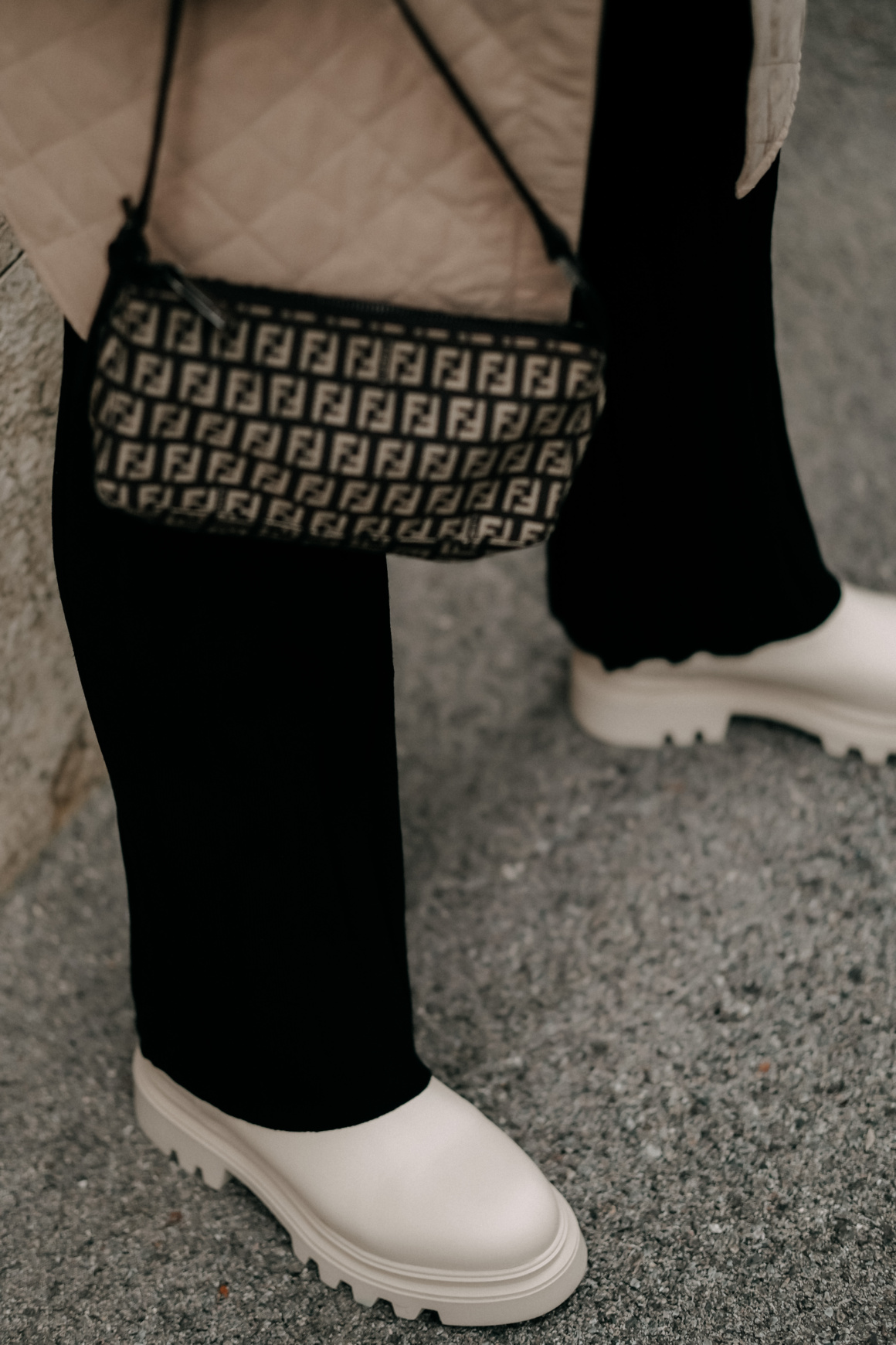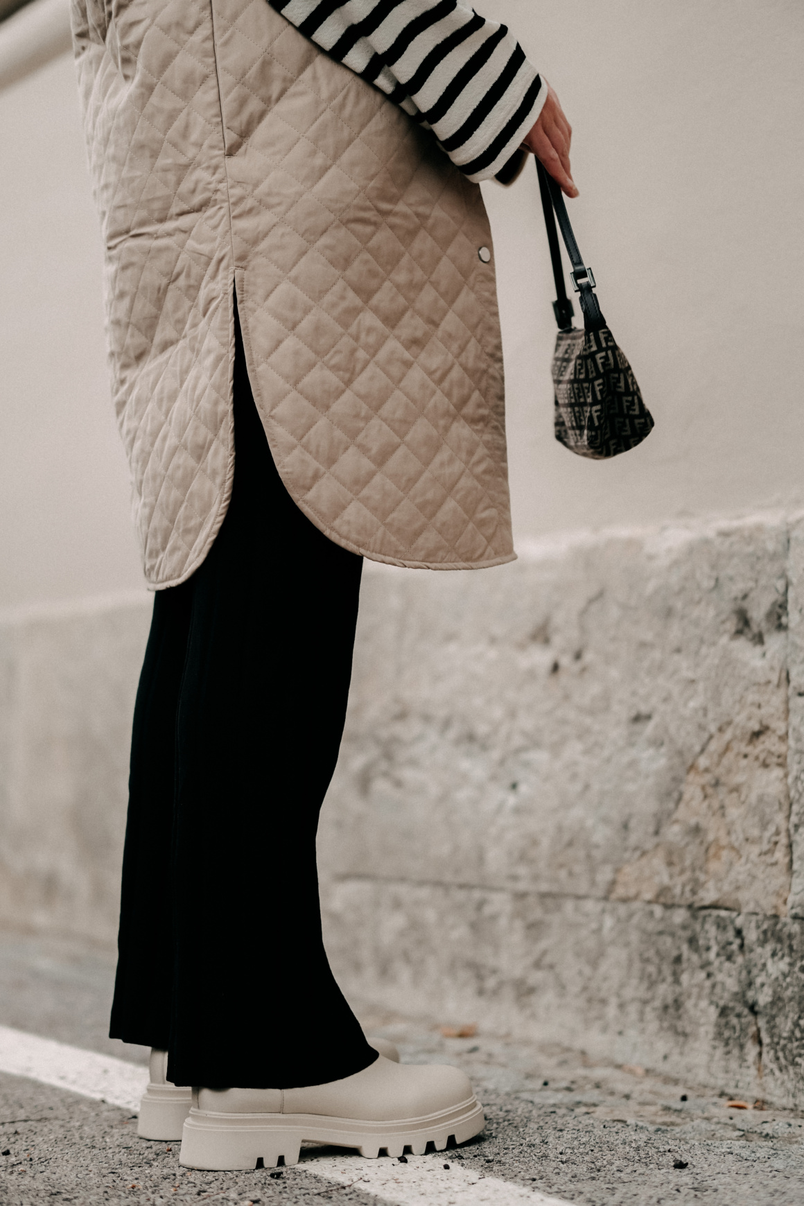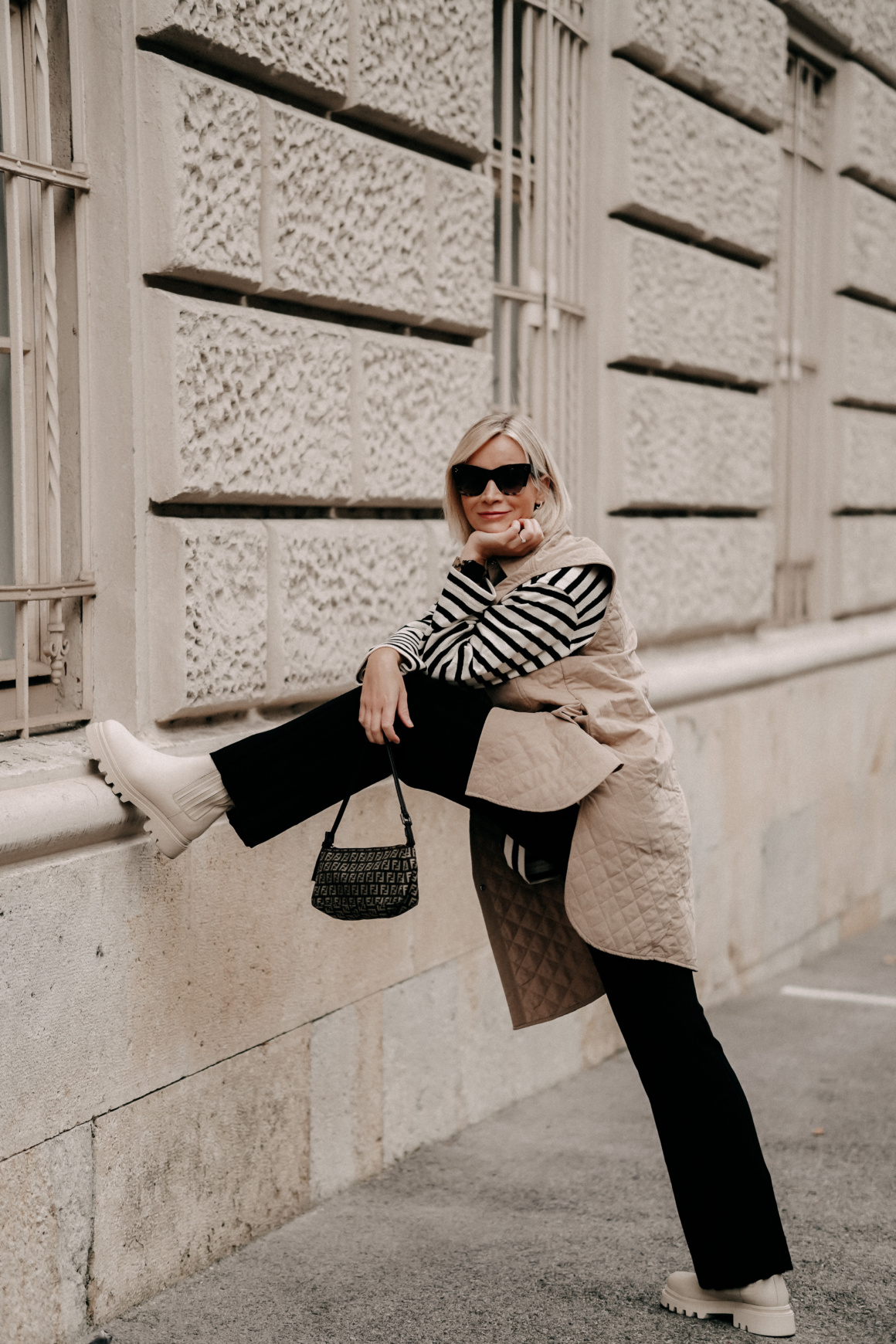 Weste: H&M / Jersey Polo: Arket / Boots: CCC / Tasche: Fendi (vintage) / Hose: H&M / Sonnenbrille: Céline